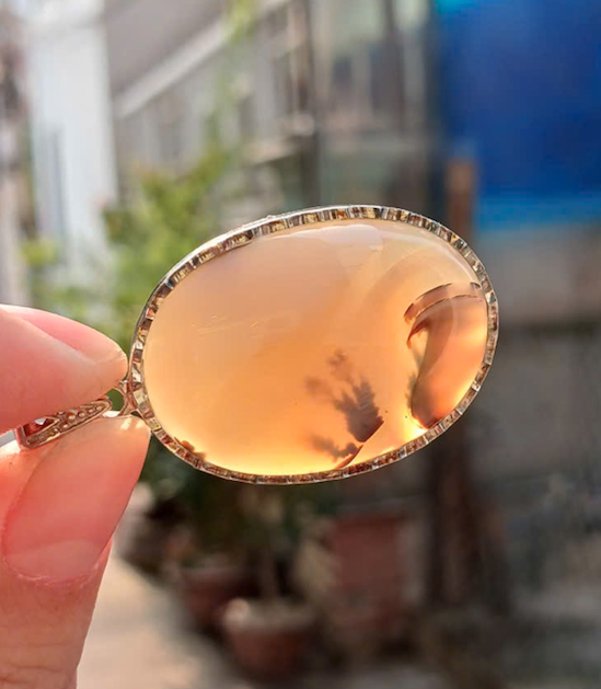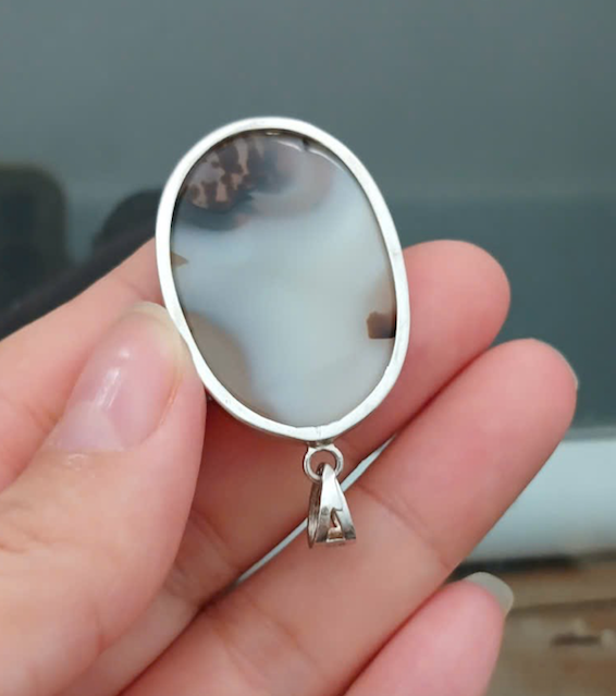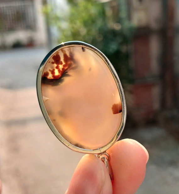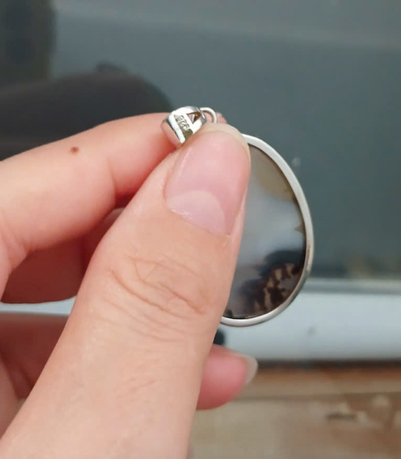 Mặt dây chuyền Mã não, khung bạc dày dặn, Đẹp như 1 bức tranh, giá nước ngoài khá cao