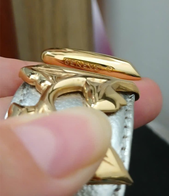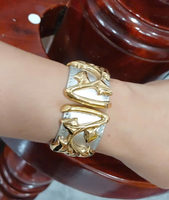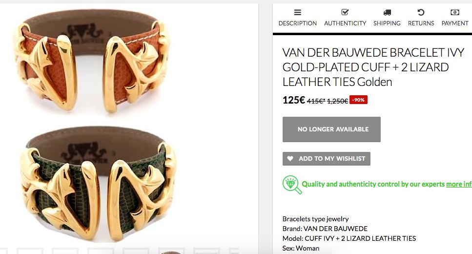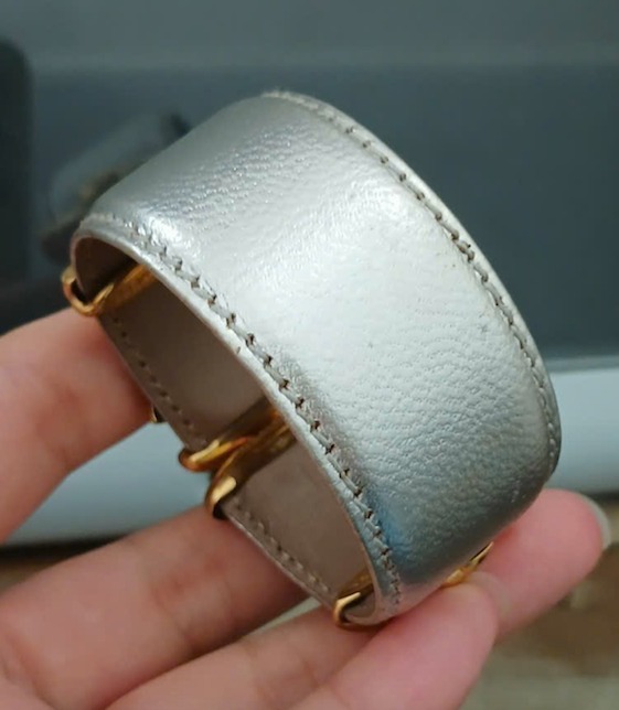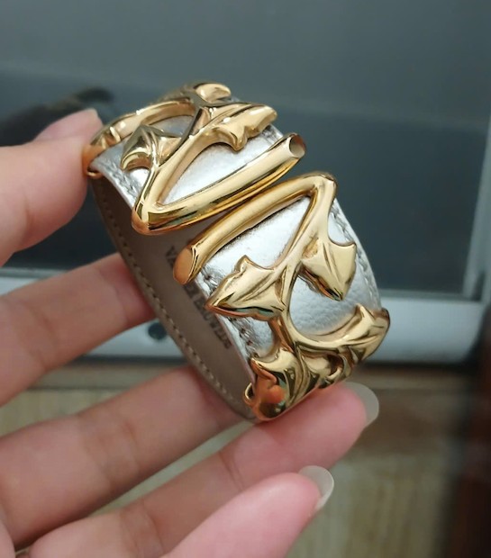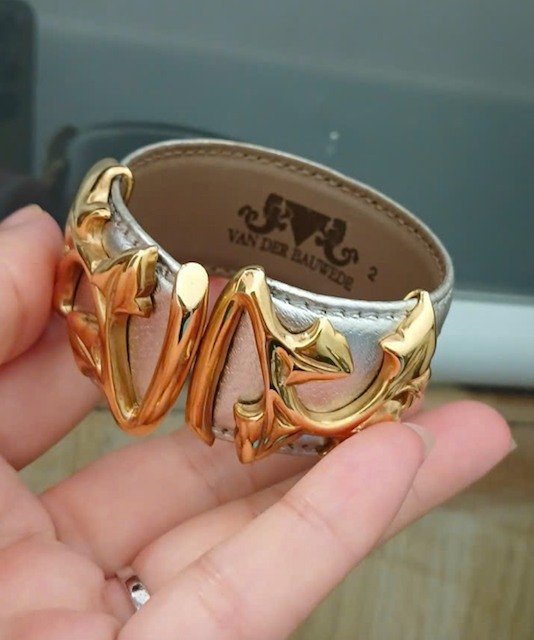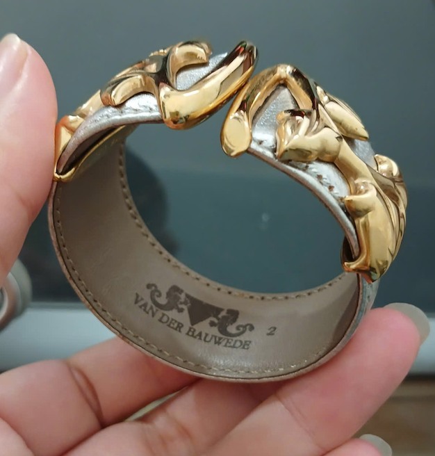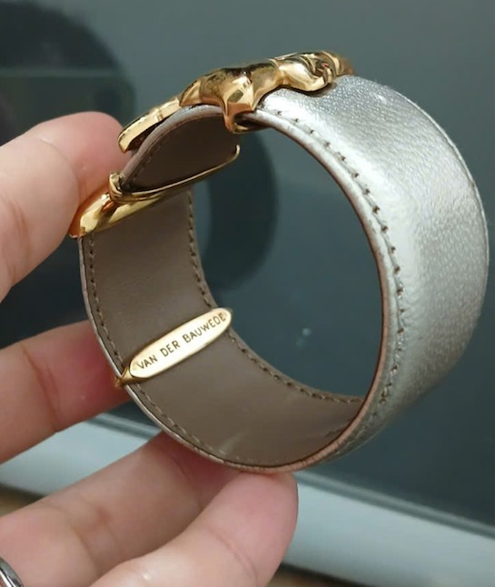 Vòng tay Nữ hàng hiệu Van Der Bauwede bọc da size 3, khoen lắc kê vàng siêu sang