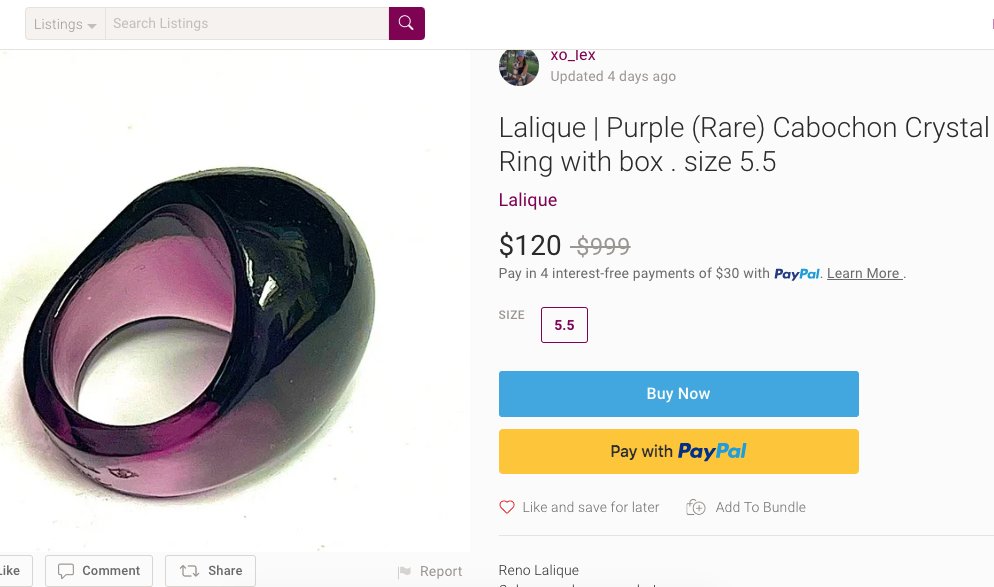 https://poshmark.com/listing/Lalique-Purple-Rare-Cabochon-Crystal-Dome-Ring-with-box-size-55-640e9c71eb7e7a945d4dfd92