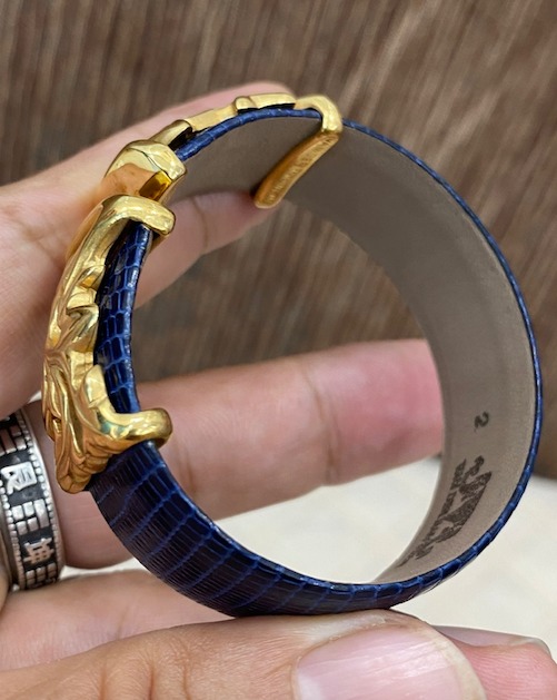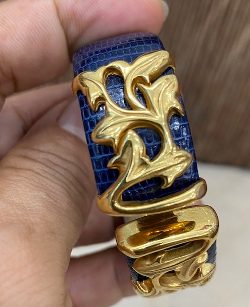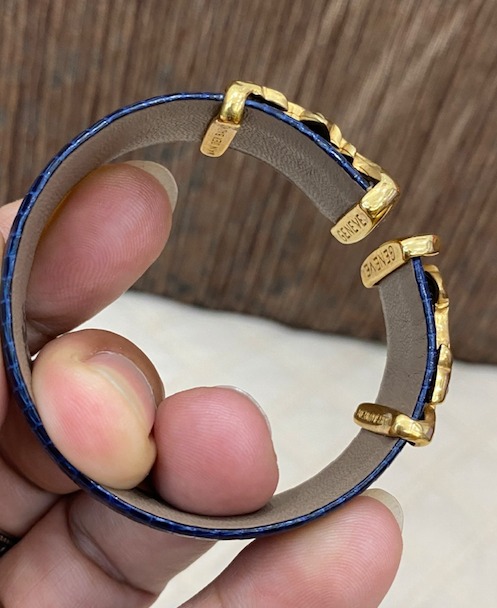 Vòng tay Nữ hàng hiệu Van Der Bauwede bọc da, khoen lắc kê vàng siêu sang