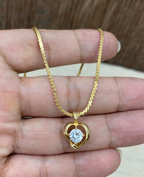 Dây chuyền Nữ si nhật mạ vàng, mặt trái tim đính viên CZ chói lóa