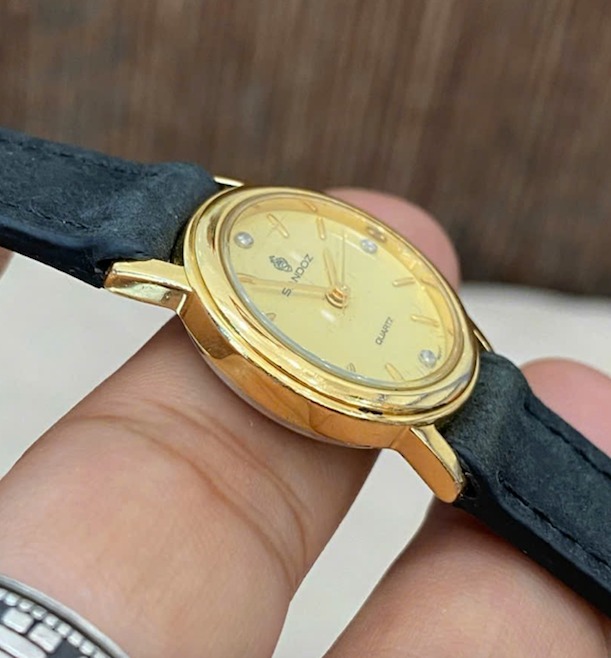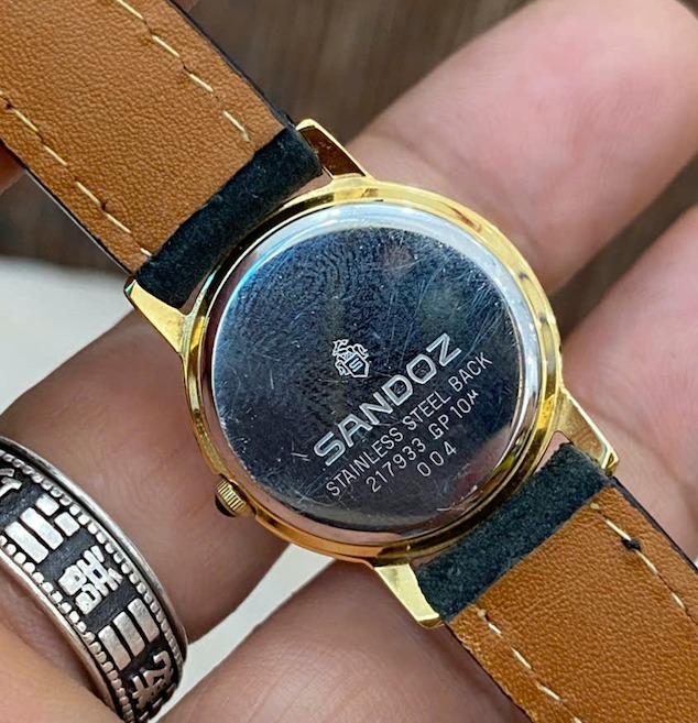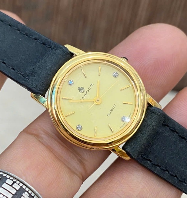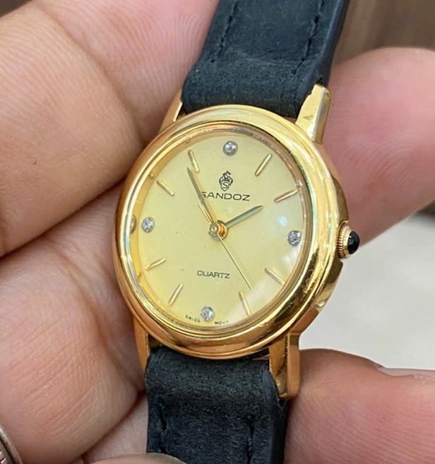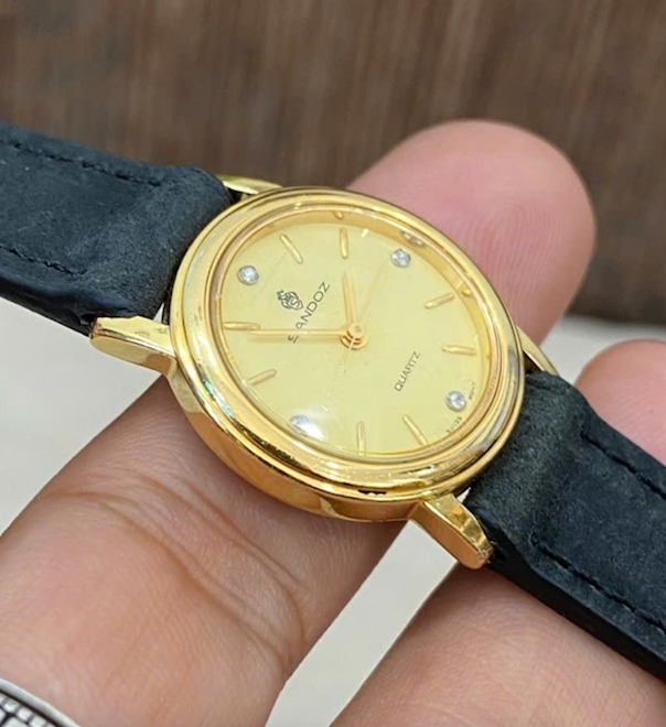 Sandoz - Đồng hồ Nữ hàng hiệu thuỵ sỹ bọc vàng 10mc, đính 4 viên KC siêu sang