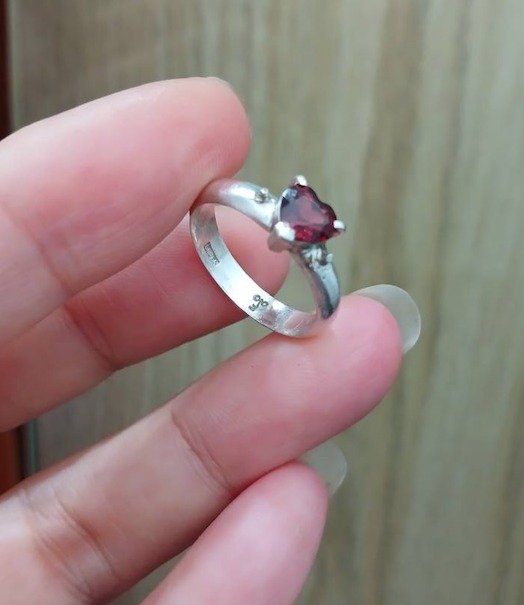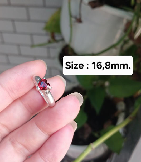 Nhẫn Nữ bạc hiệu, mặt đính viên Ngọc hồng lựu hình trái tim độc đẹp