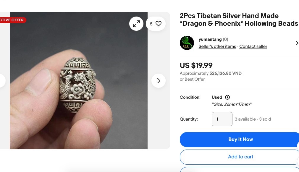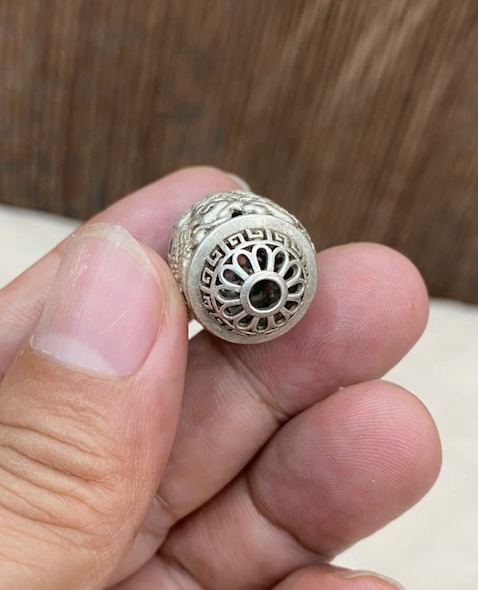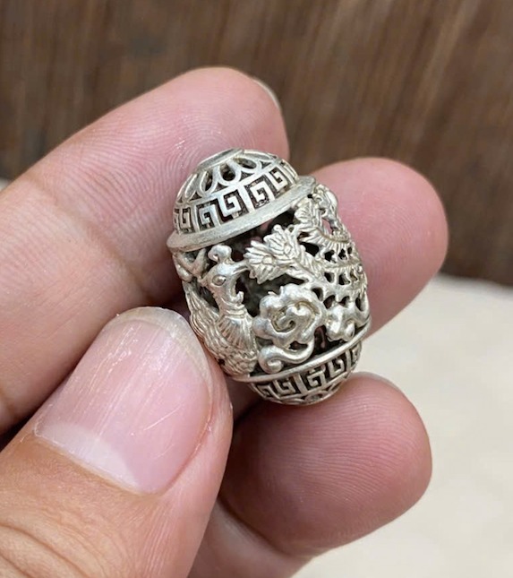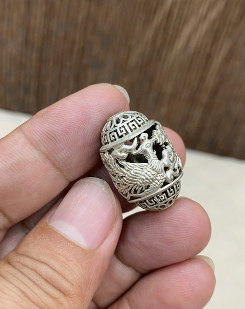 Hạt châu rỗng chạm hình Phượng hoàng, hợp kim bạc tây tạng độc đẹp