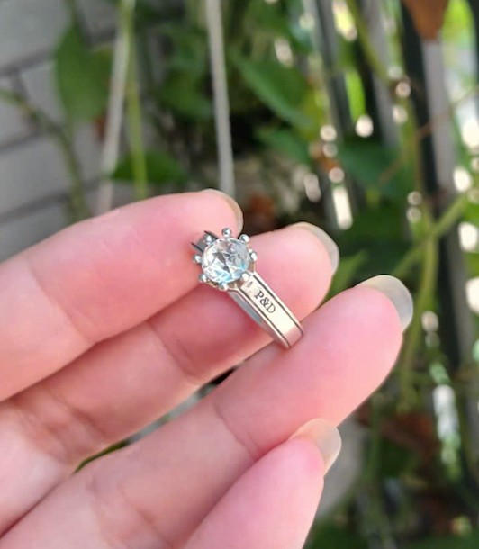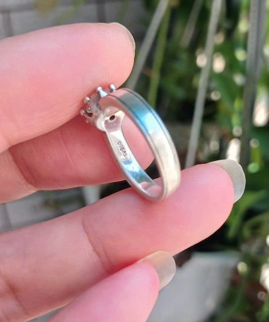 Nhẫn bạc nữ hiệu P&D, mặt đính viên CZ kiểu vương miện đẹp sang