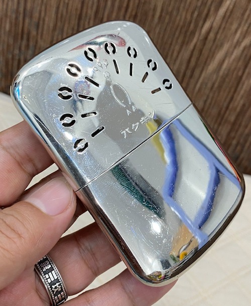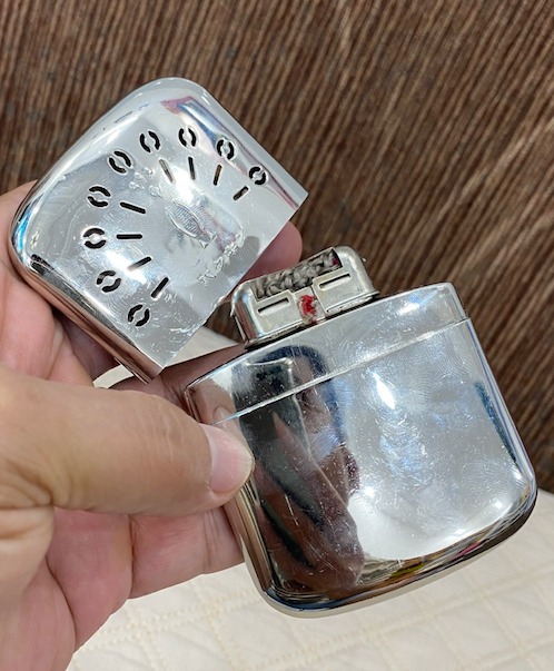 Bật lửa sưởi ấm bỏ túi, hàng vintage Nhật, vỏ Inox sáng bóng còn mới đẹp